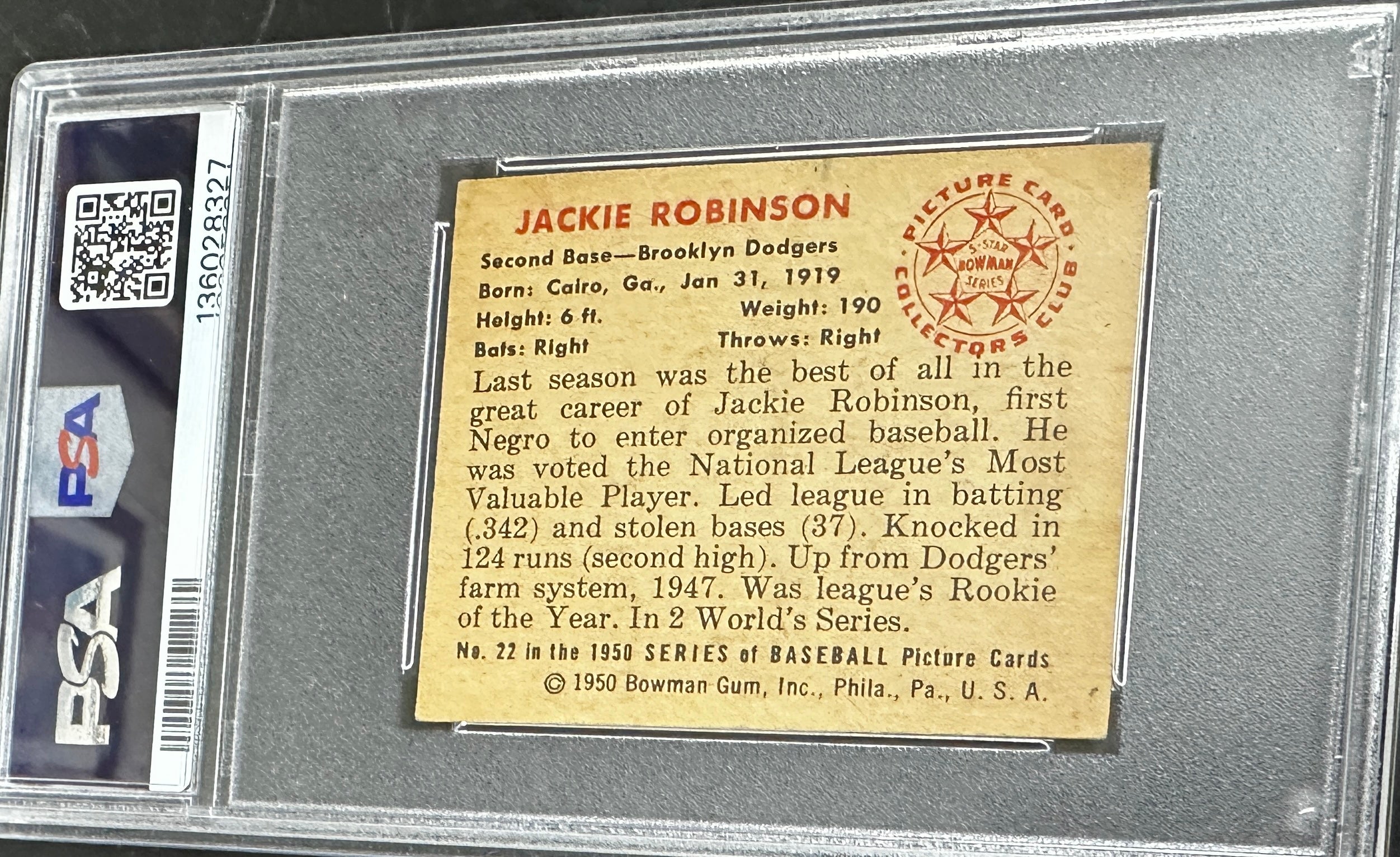 1950 Bowman #22 Jackie Robinson PSA 4