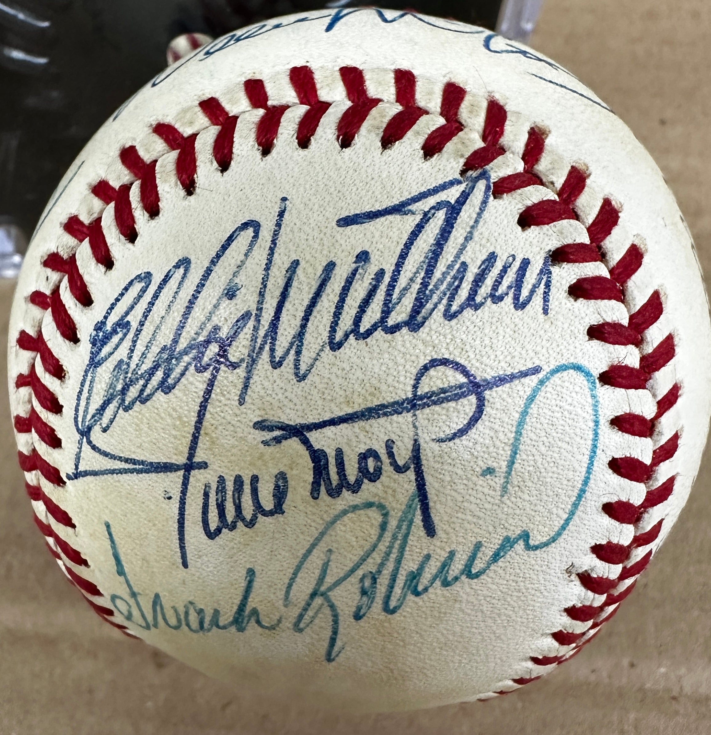 Signed by Mantle, Ted Williams, Aaron, Mays, Banks, McCovey, Schmidt, Mathews, Killebrew, Reggie Jackson, Frank Robinson.